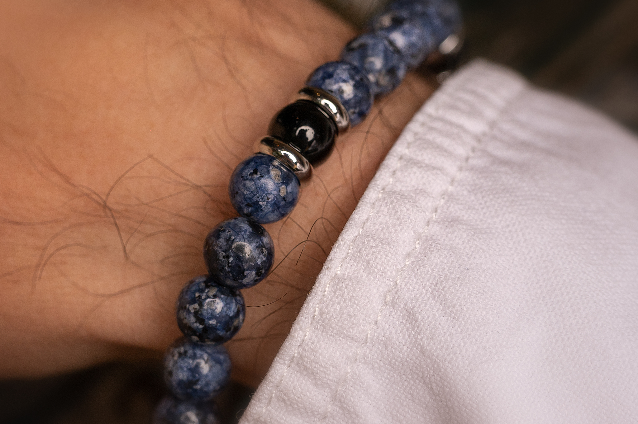 Bransoletka wykonana jest na elastycznej gumce dzięki czemu łatwo dopasowuje się do nadgarstka