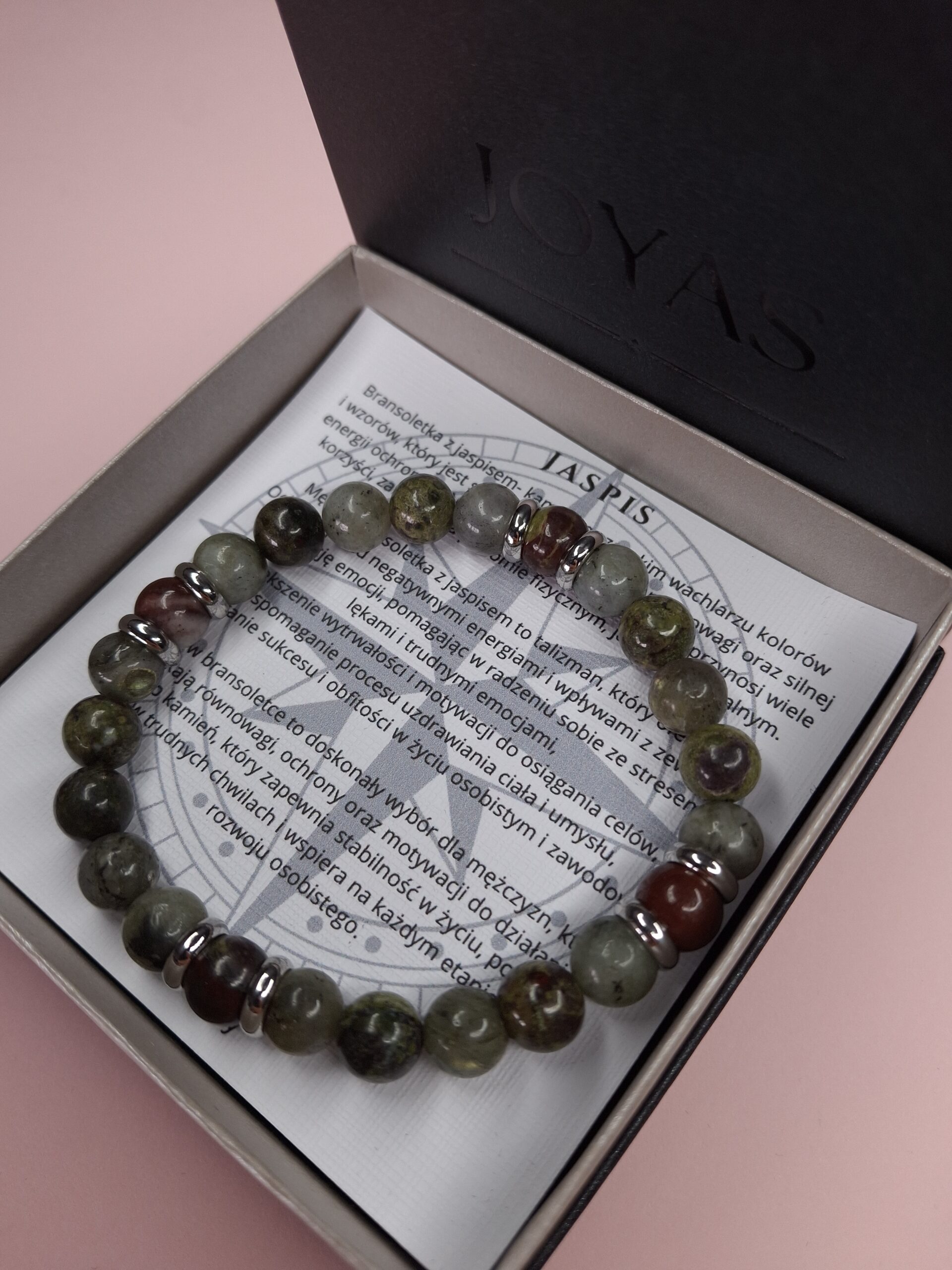 Bransoletka z jaspisem – kamień o szerokim wachlarzu kolorów i wzorów, który jest symbolem uzdrawiania, równowagi oraz silnej energii ochronnej. Noszenie bransoletki z jaspisem przynosi wiele korzyści, zarówno na poziomie fizycznym, jak i emocjonalnym.