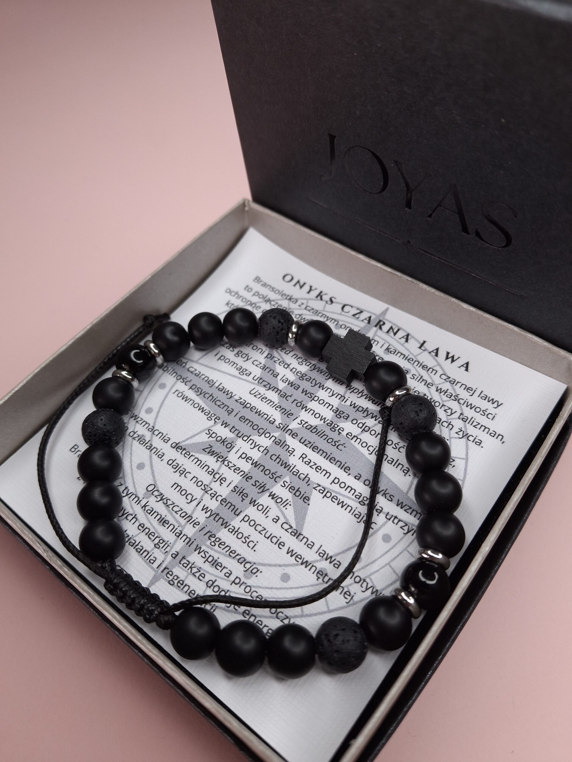 Bransoletka z czarnym onyksem i kamieniem czarnej lawy to połączenie dwóch kamieni, które mają silne właściwości
