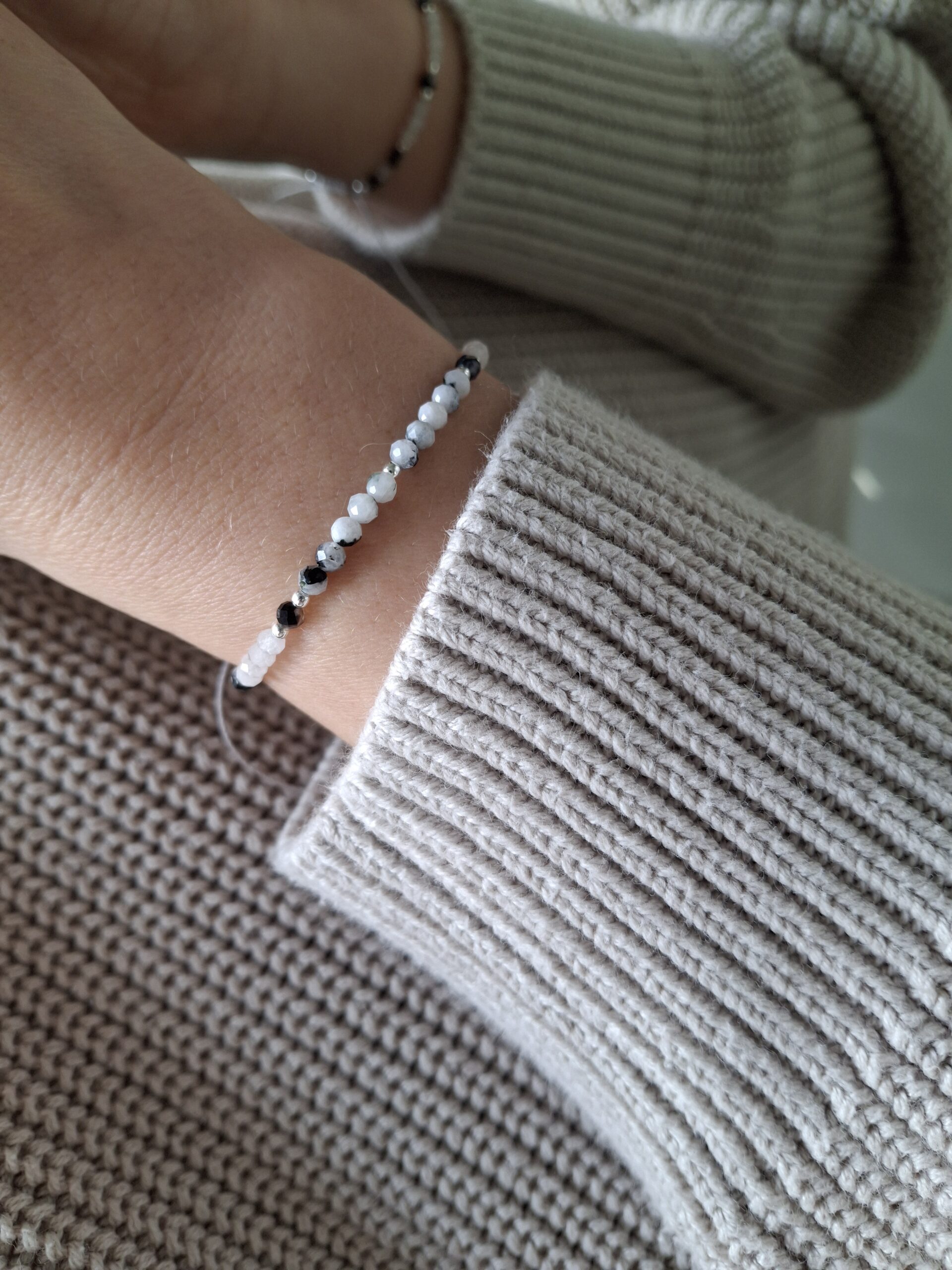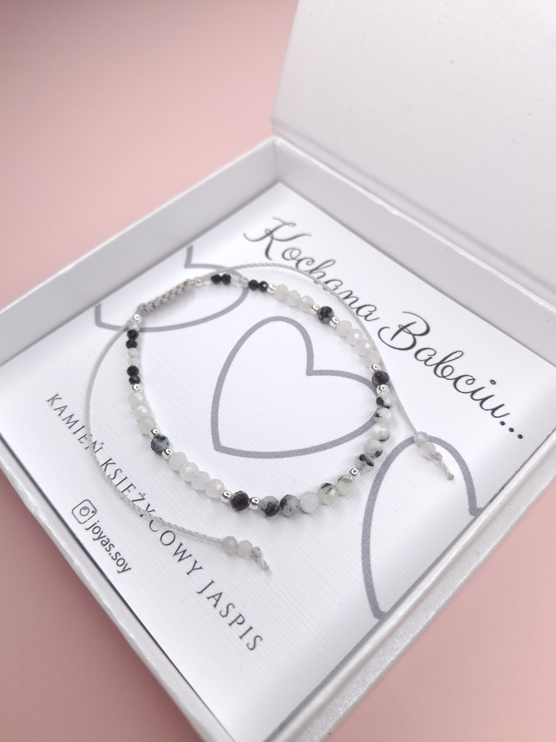 Bransoletka na Dzień Babci z kamieniem księżycowym i jaspisem – symbol ciepła, mądrości i miłości.
