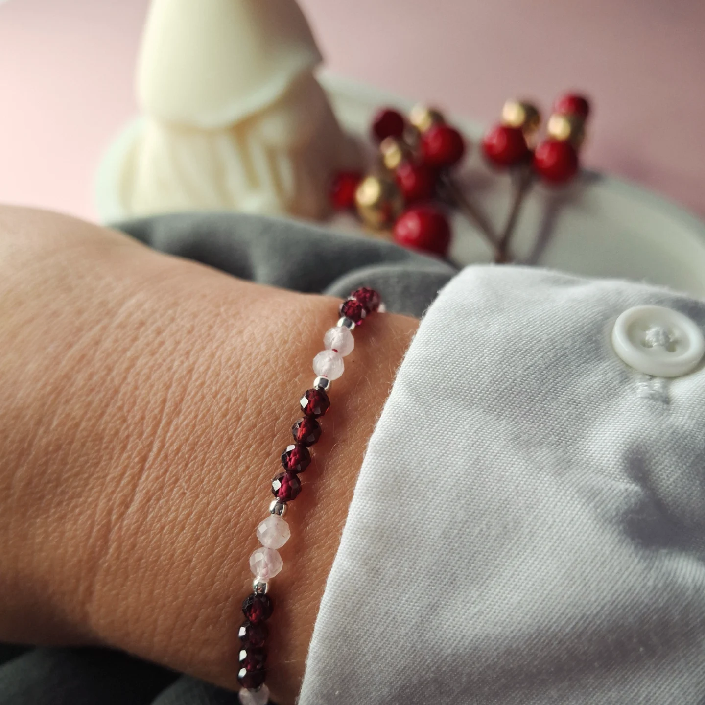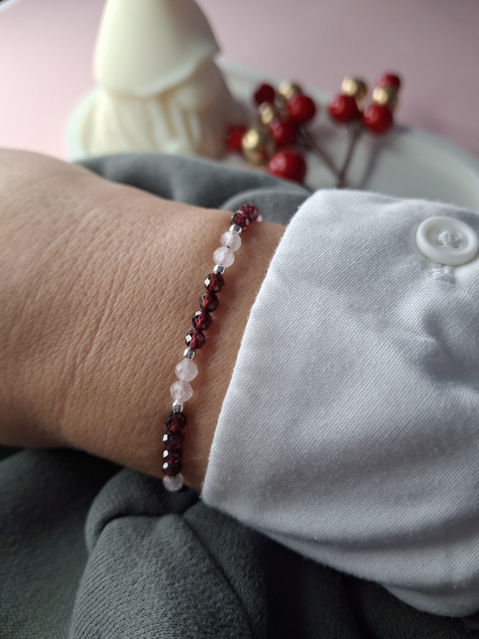 Każdy egzemplarz jest unikatowy, wykonany ręcznie, naturalne kamienie różnią
