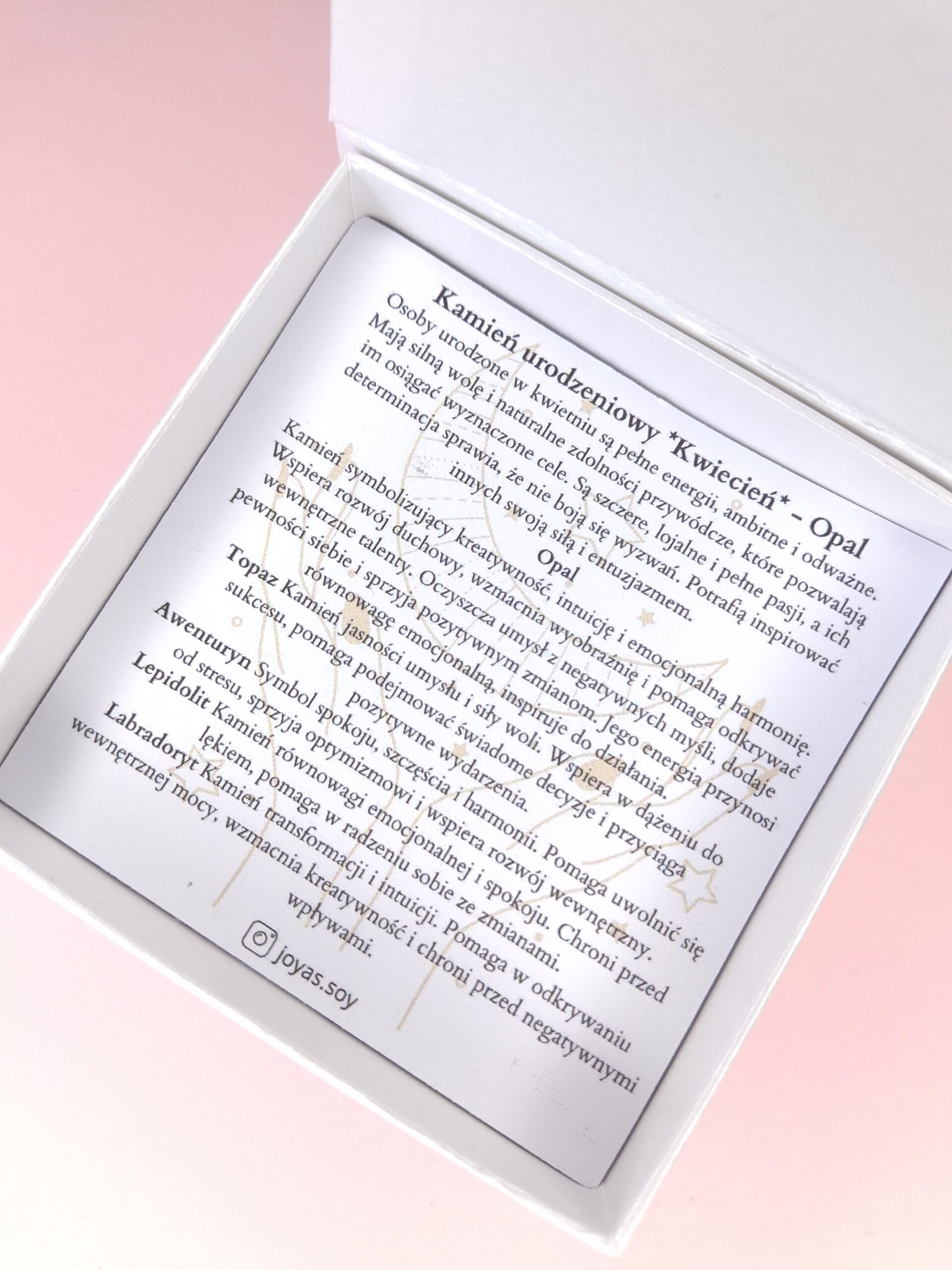 Bransoletka z kamieniem urodzeniowym kwietnia -opal- talizman kreatywności, emocjonalnej równowagi i inspiracji. Wzmacnia intuicję, chroni przed negatywnymi wpływami i przynosi wewnętrzny spokój, radość oraz otwartość na nowe możliwości w życiu.