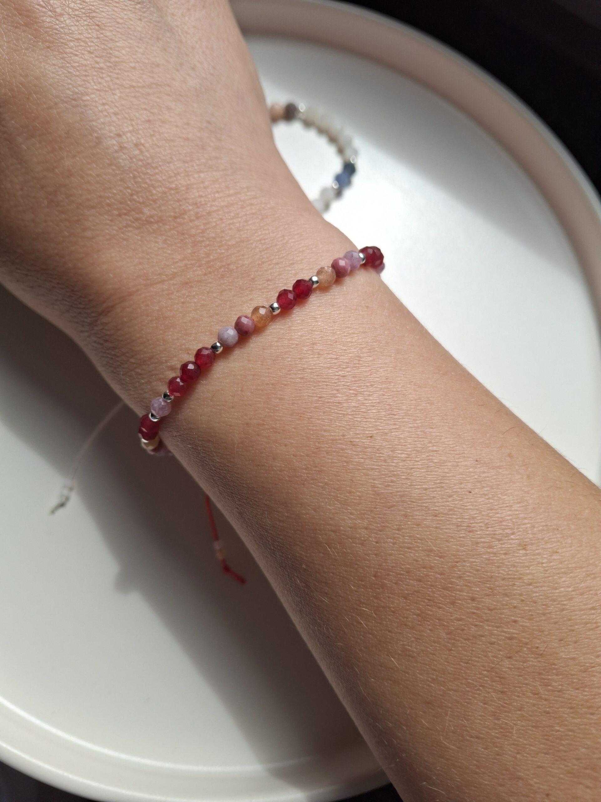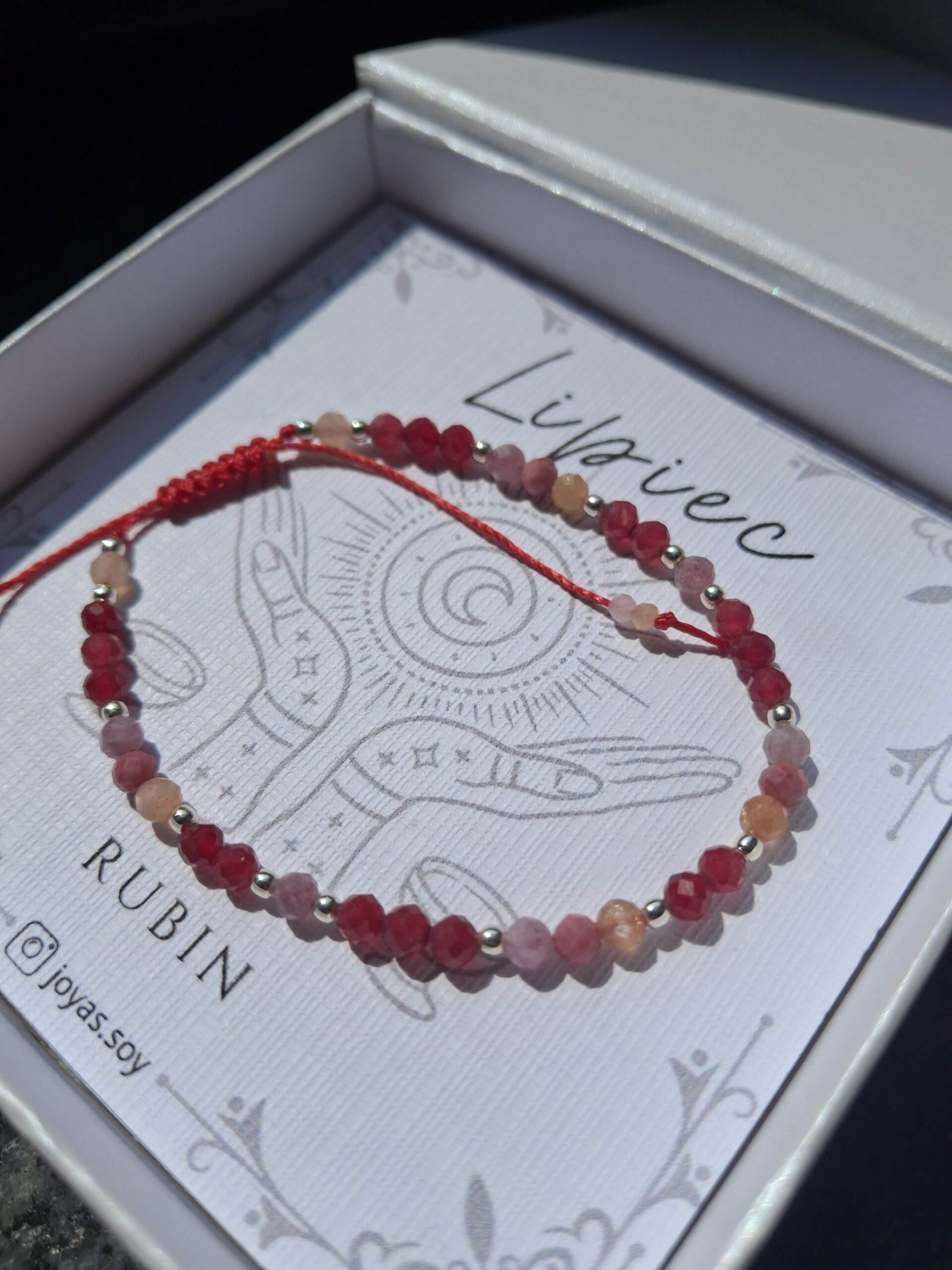 Bransoletka z kamieniem urodzeniowym lipca – rubinem – talizman odwagi, pasji i witalności. Wzmacnia energię życiową, motywację i pewność siebie, chroni przed negatywnymi wpływami oraz wspiera serce i równowagę emocjonalną.
