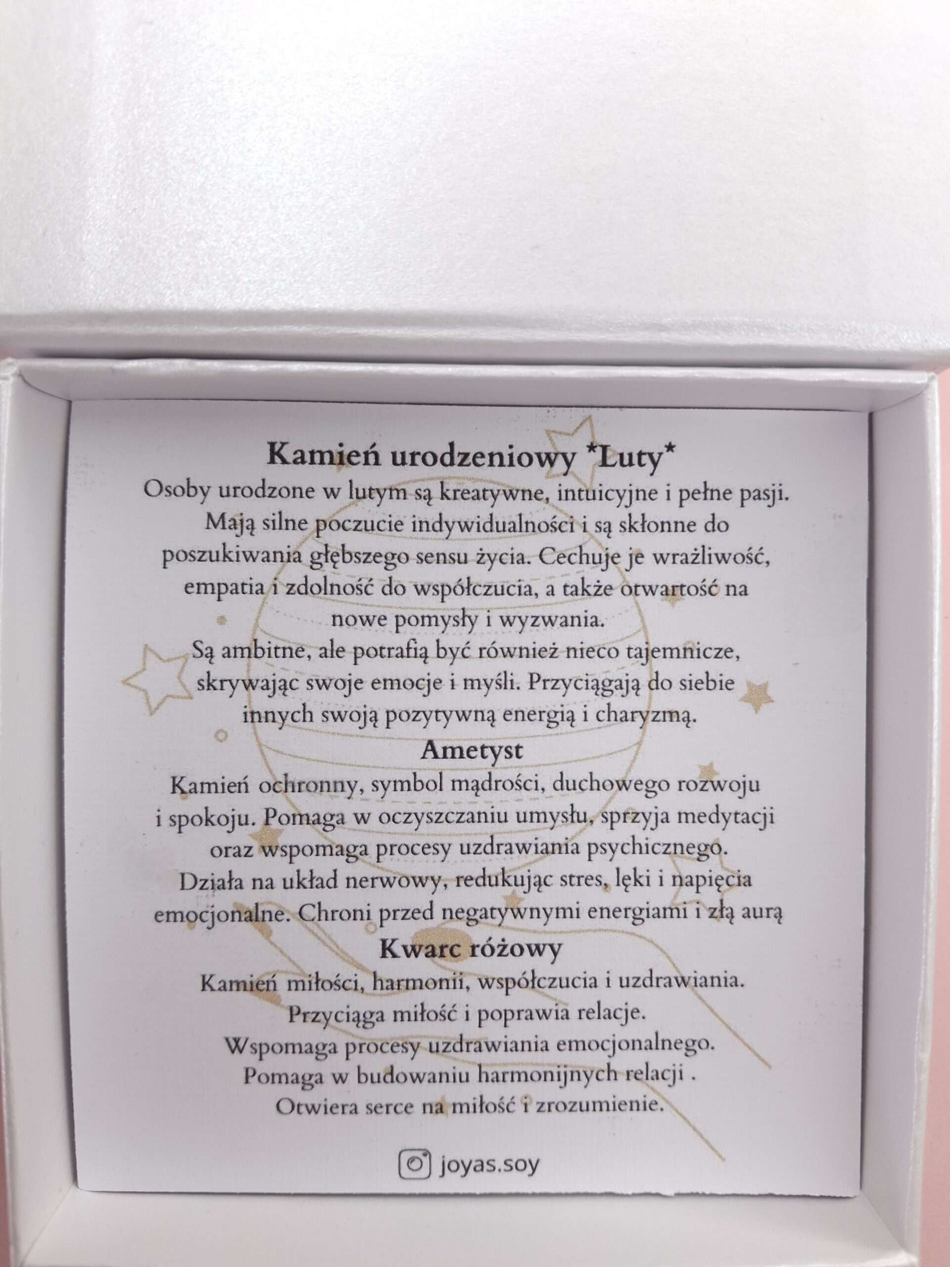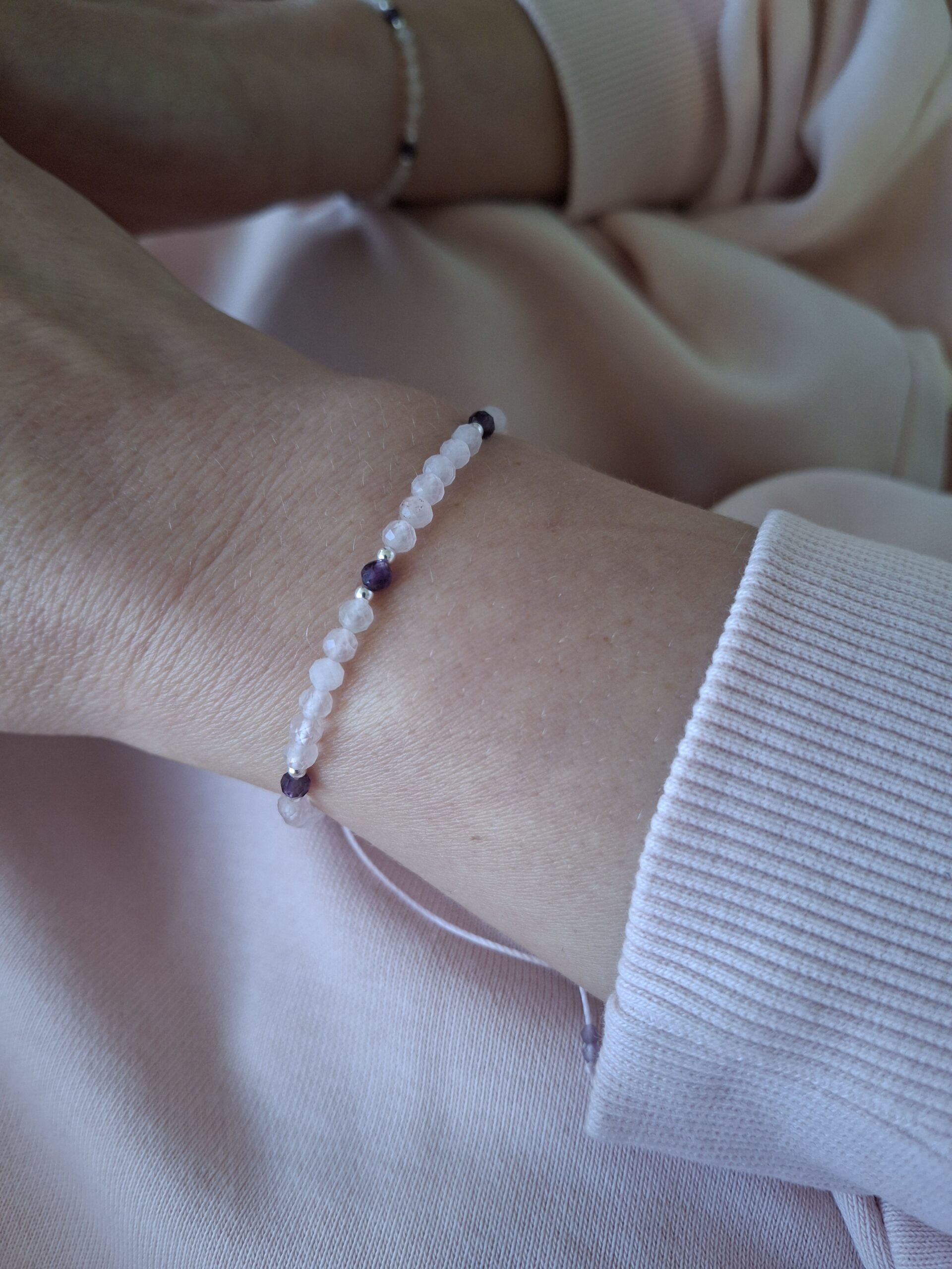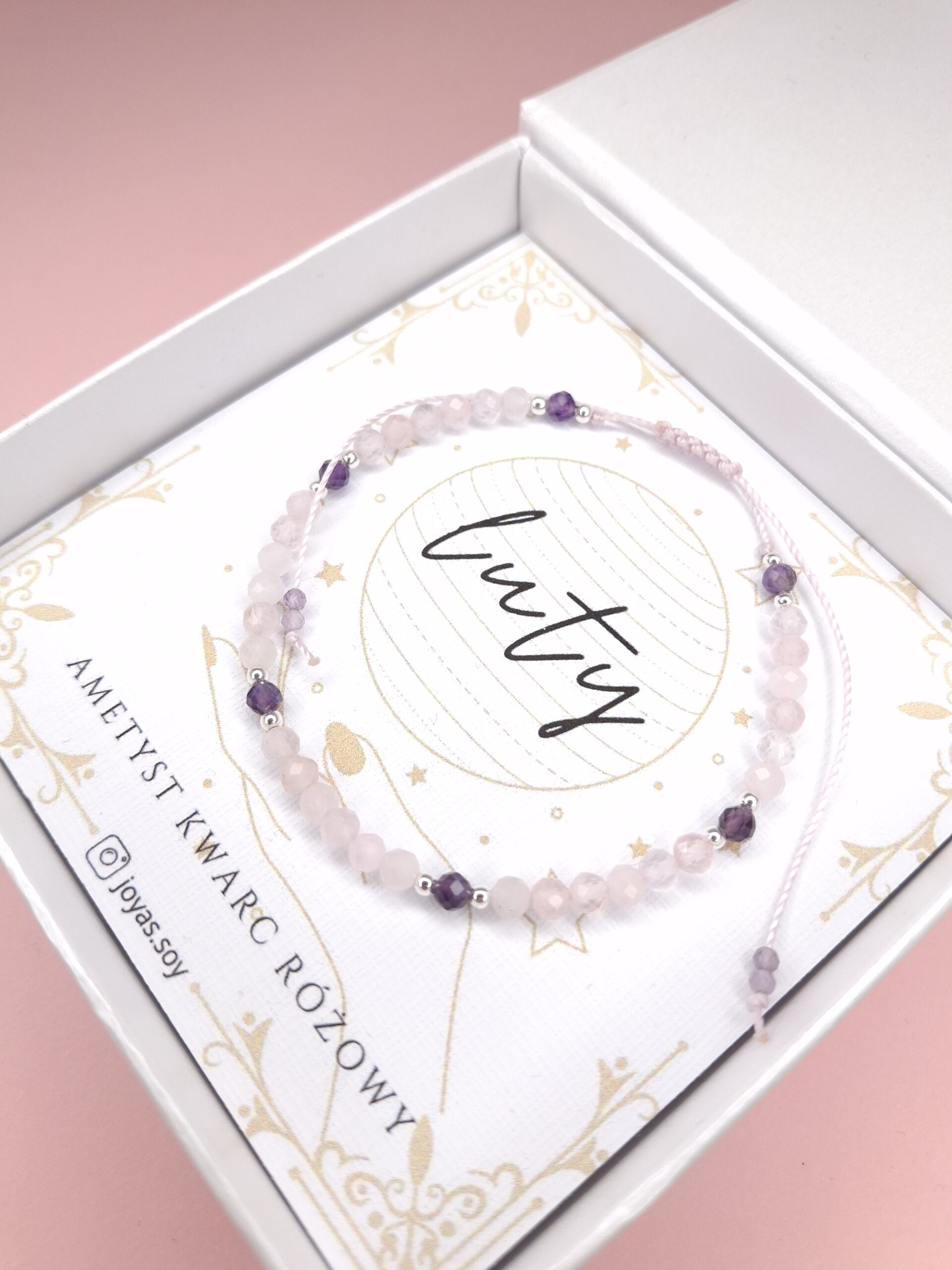 Bransoletka z kamieniem urodzeniowym lutego – ametystem – wspiera spokój umysłu, równowagę emocjonalną i duchową jasność. Chroni przed negatywną energią, łagodzi stres i napięcia, wzmacnia intuicję oraz sprzyja mądrym decyzjom i wewnętrznej harmonii.