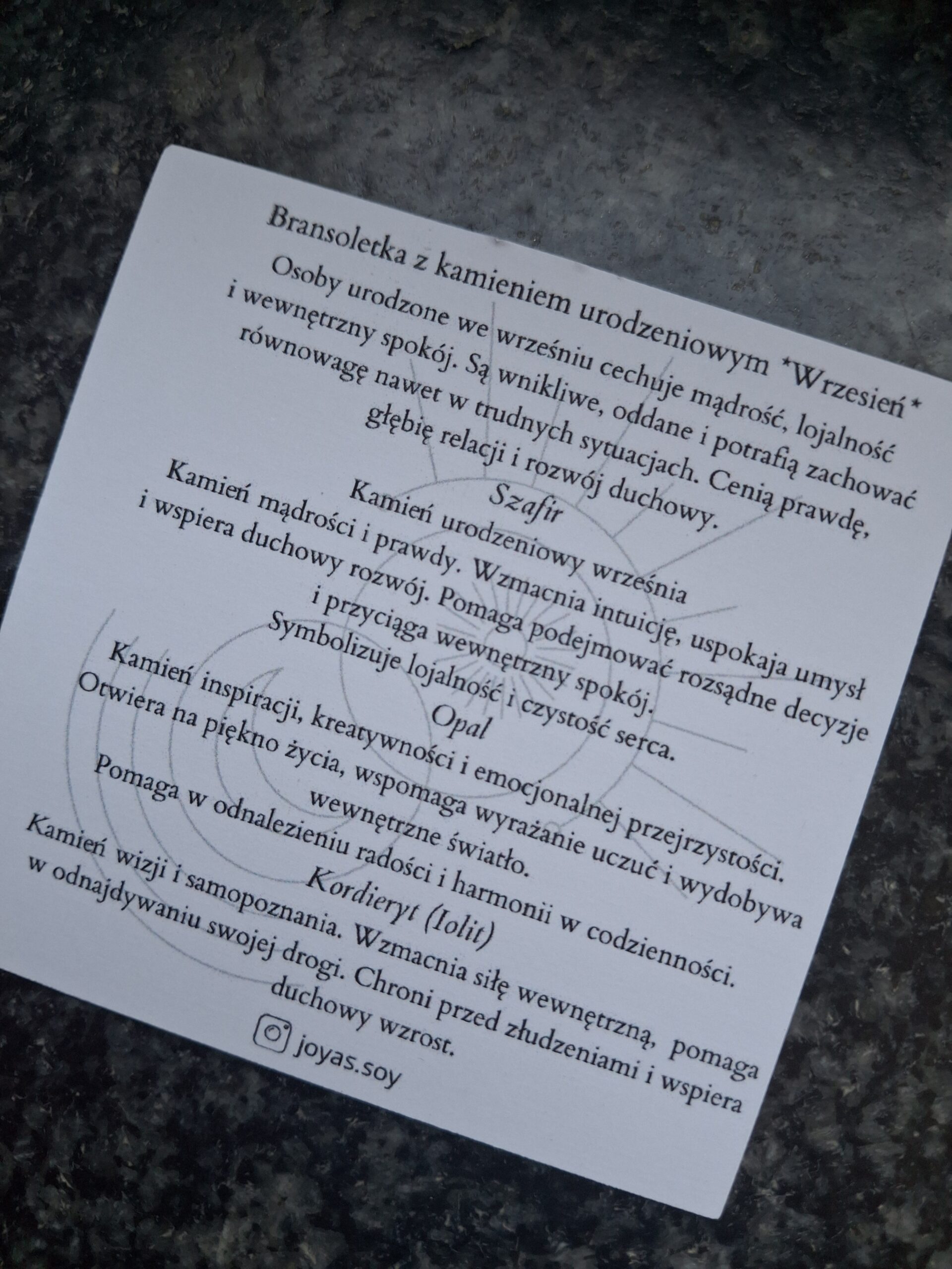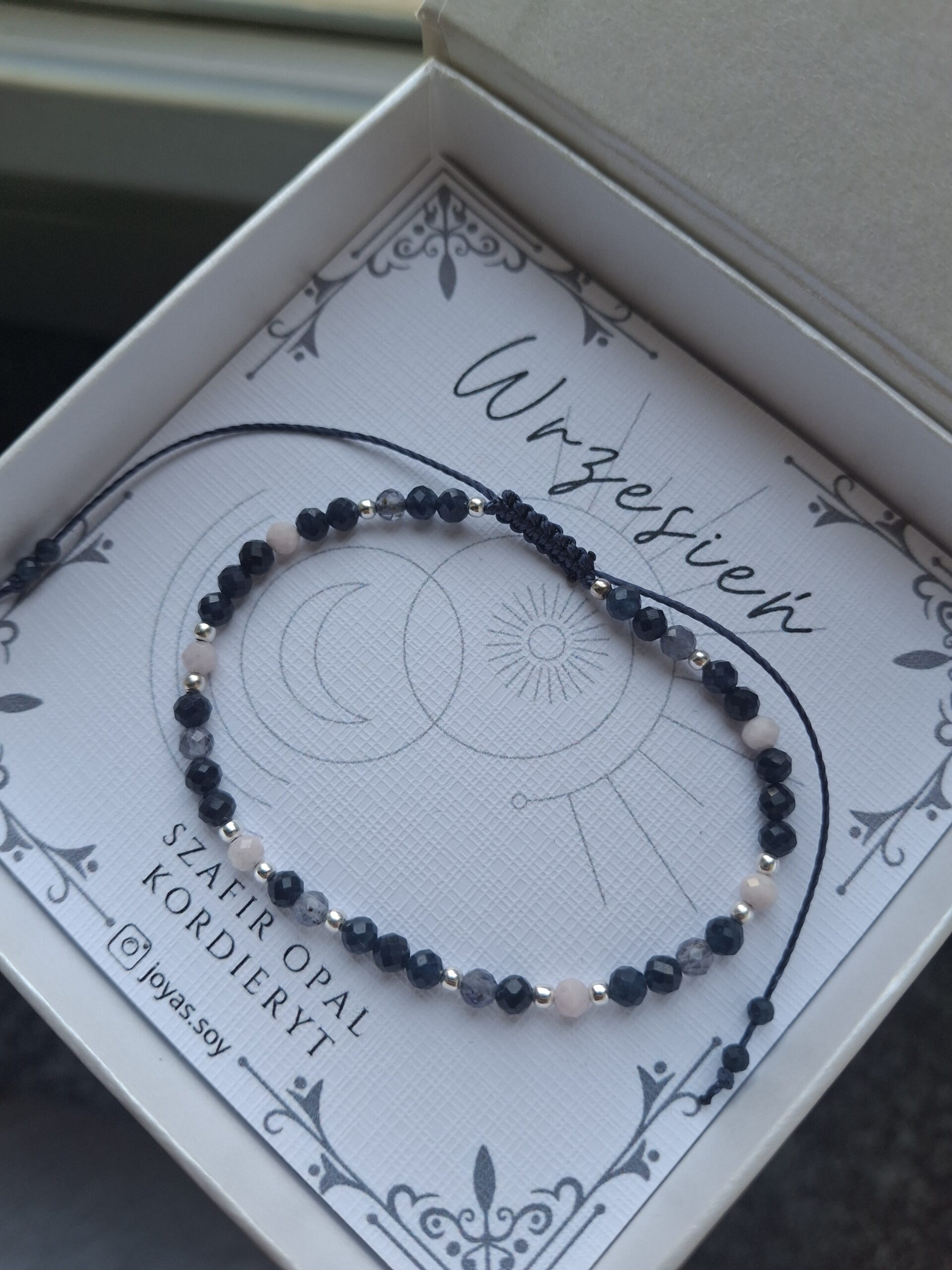 Bransoletka z kamieniem urodzeniowym września – szafirem – kamieniem mądrości i wewnętrznego spokoju.
