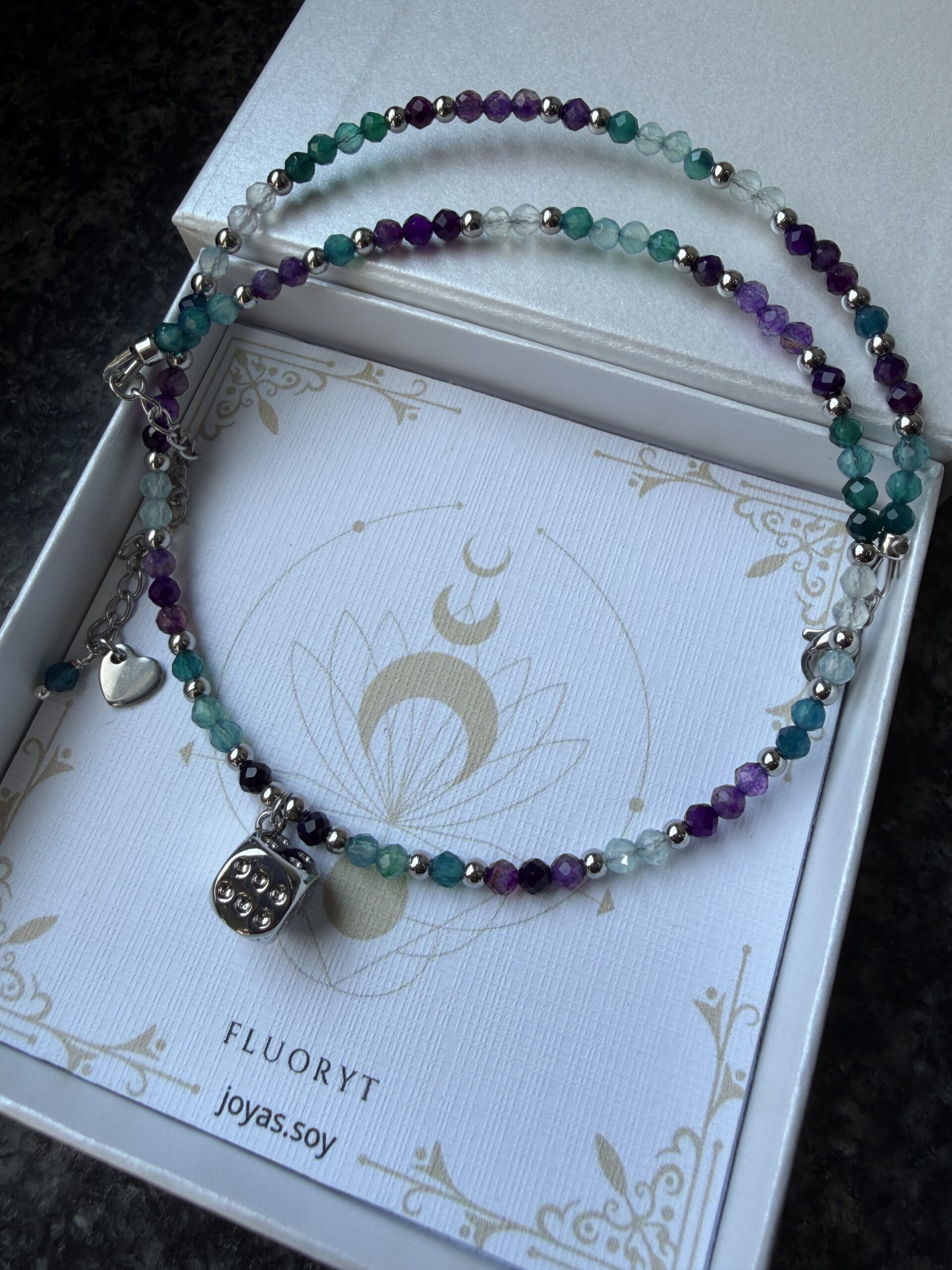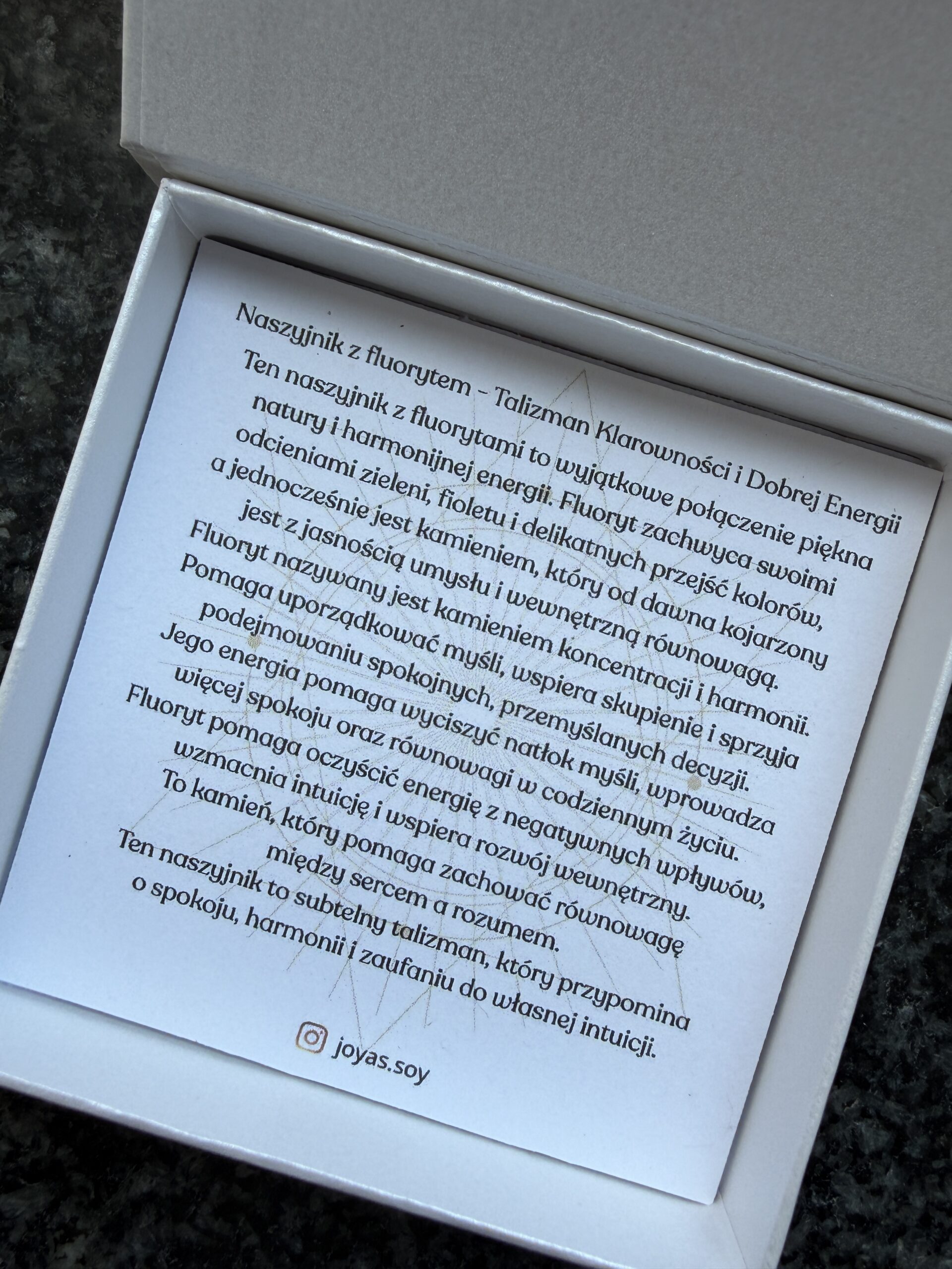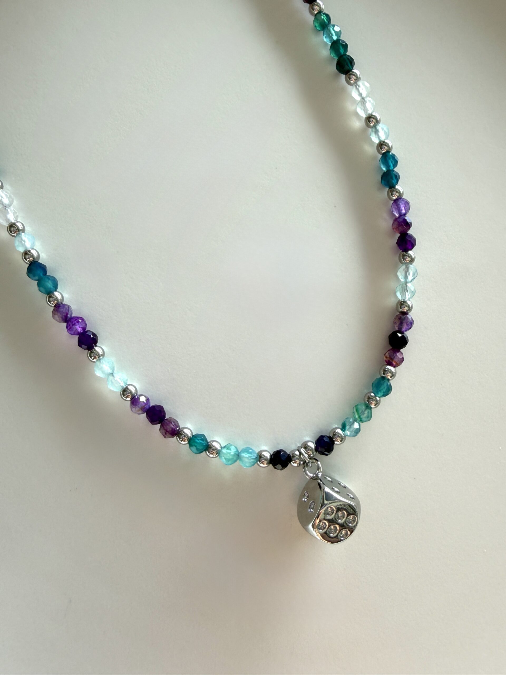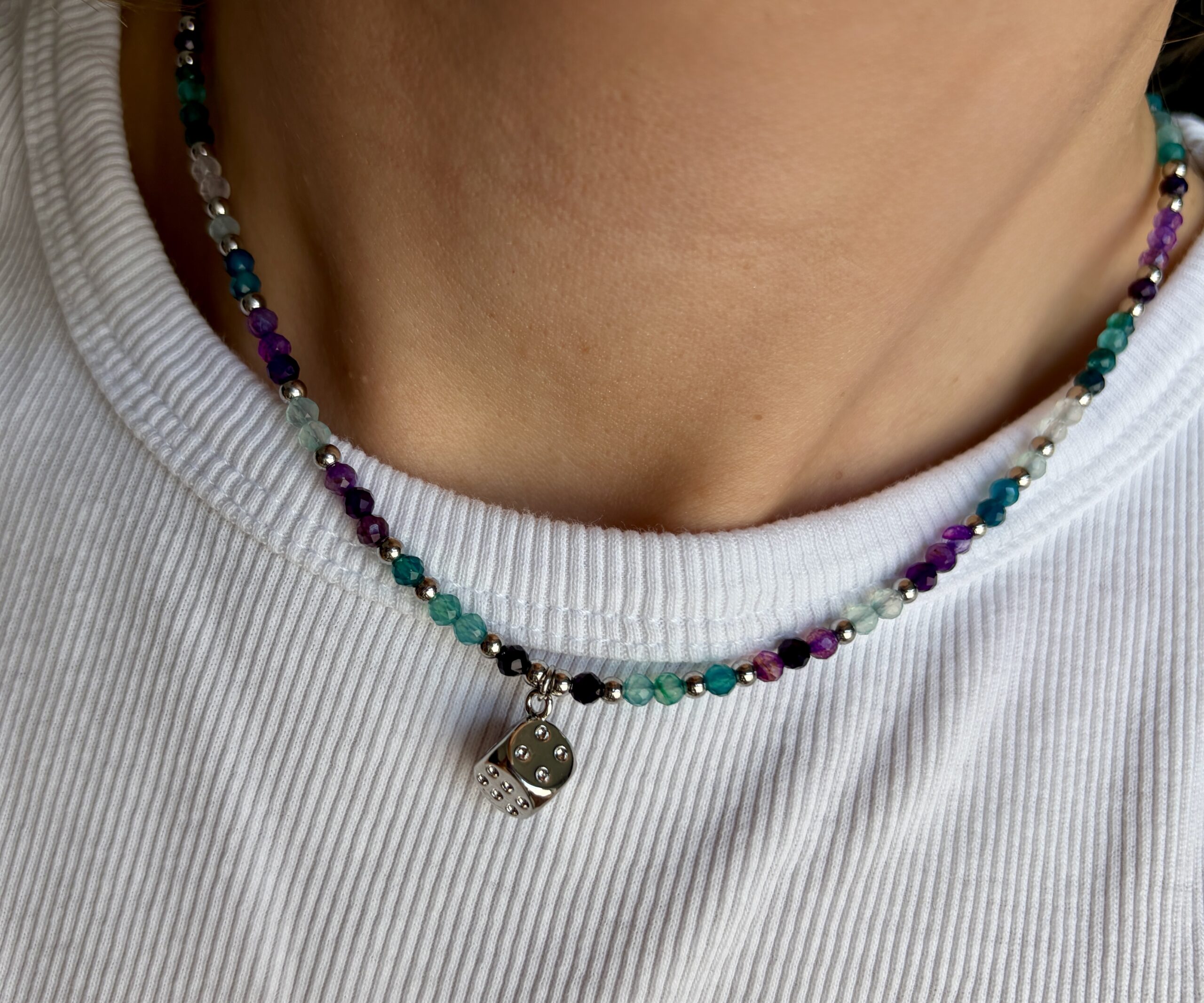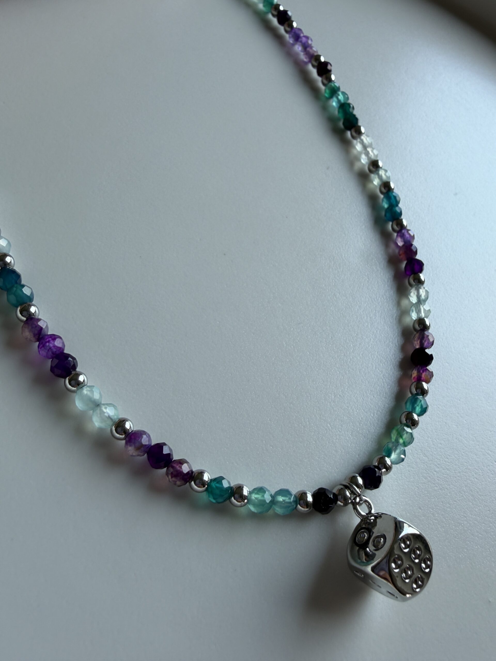 Naszyjnik z fluorytami – Talizman Klarowności i Dobrej Energii – wyjątkowy talizman spokoju, koncentracji i dobrej energii. Pomaga uporządkować myśli, wzmocnić intuicję oraz wprowadzić więcej równowagi i harmonii do codziennego życia.